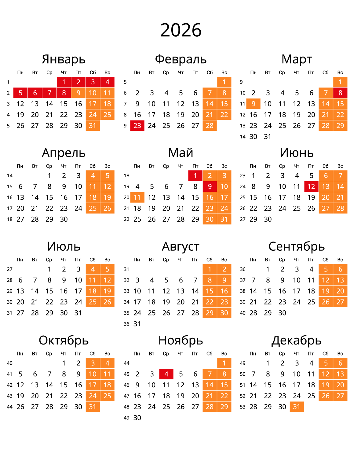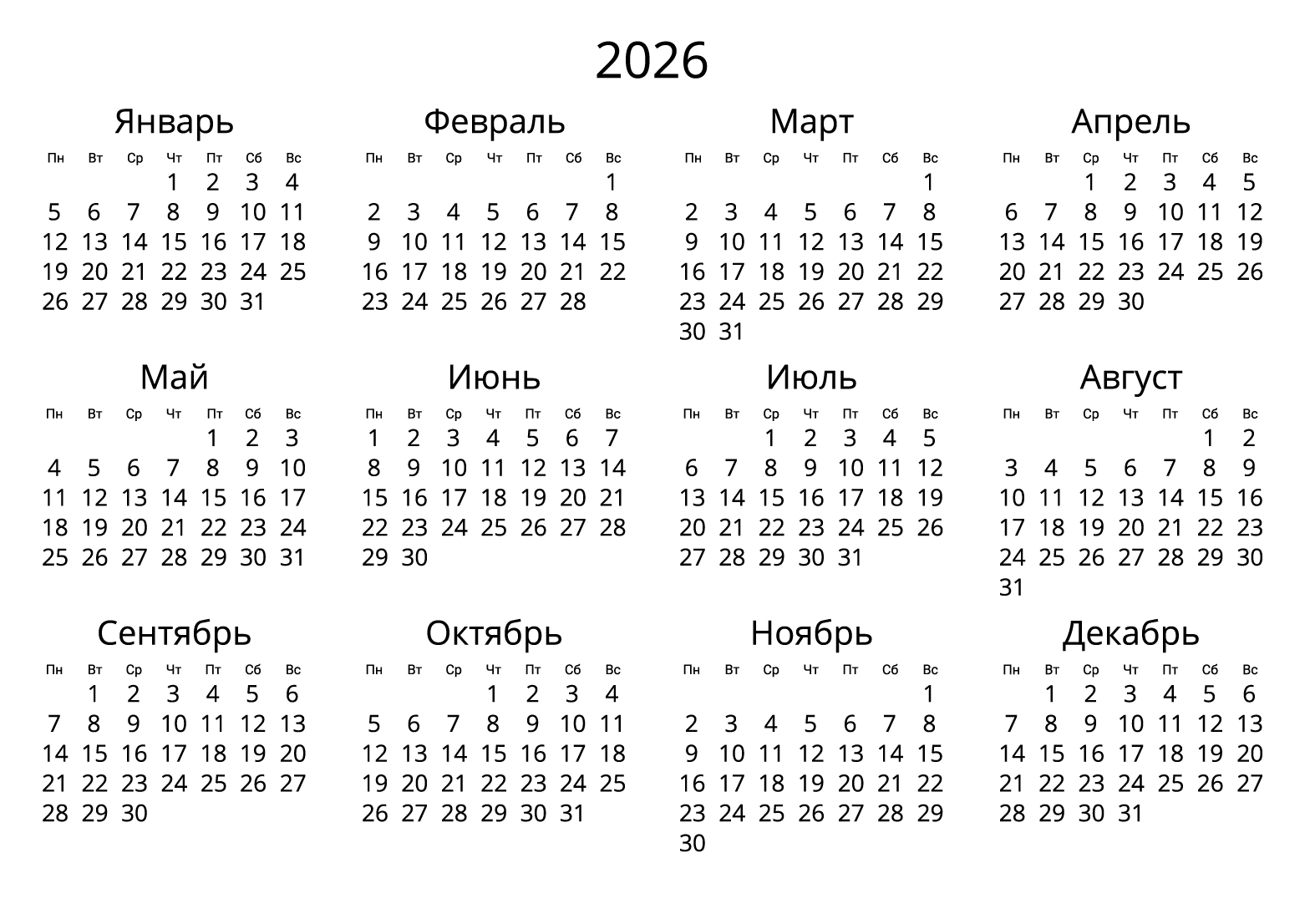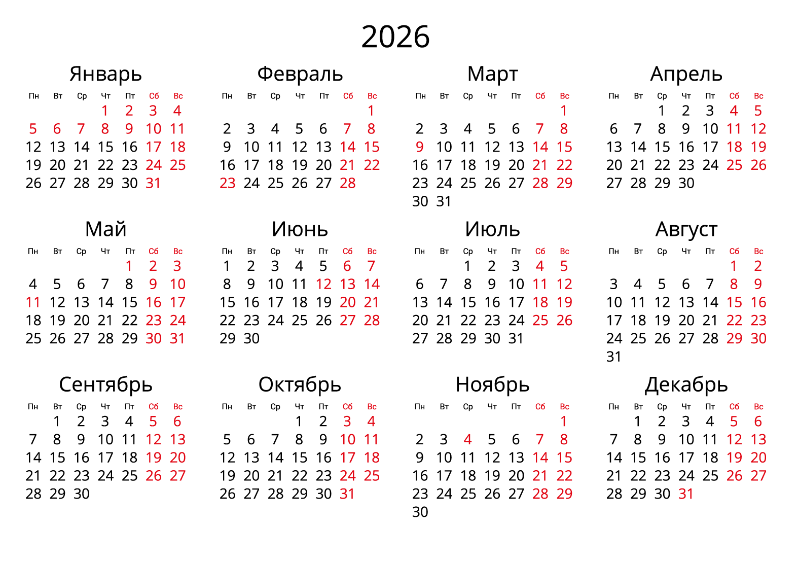 Для скачивания календаря на 2026 год подготовлены книжный и альбомный формат, с номерами недель и праздниками. Все календари представлены в формате png, в высоком разрешении, бесплатно. После скачивания, можете распечатать на бумаге или поставить на заставку своего компьютера.