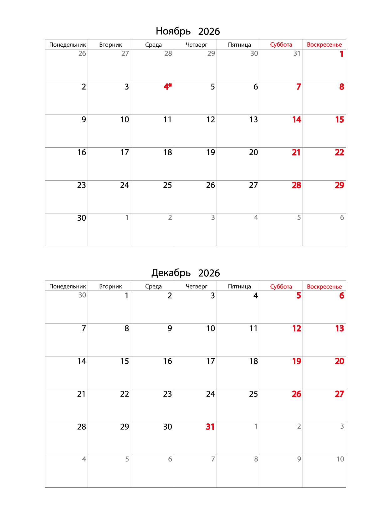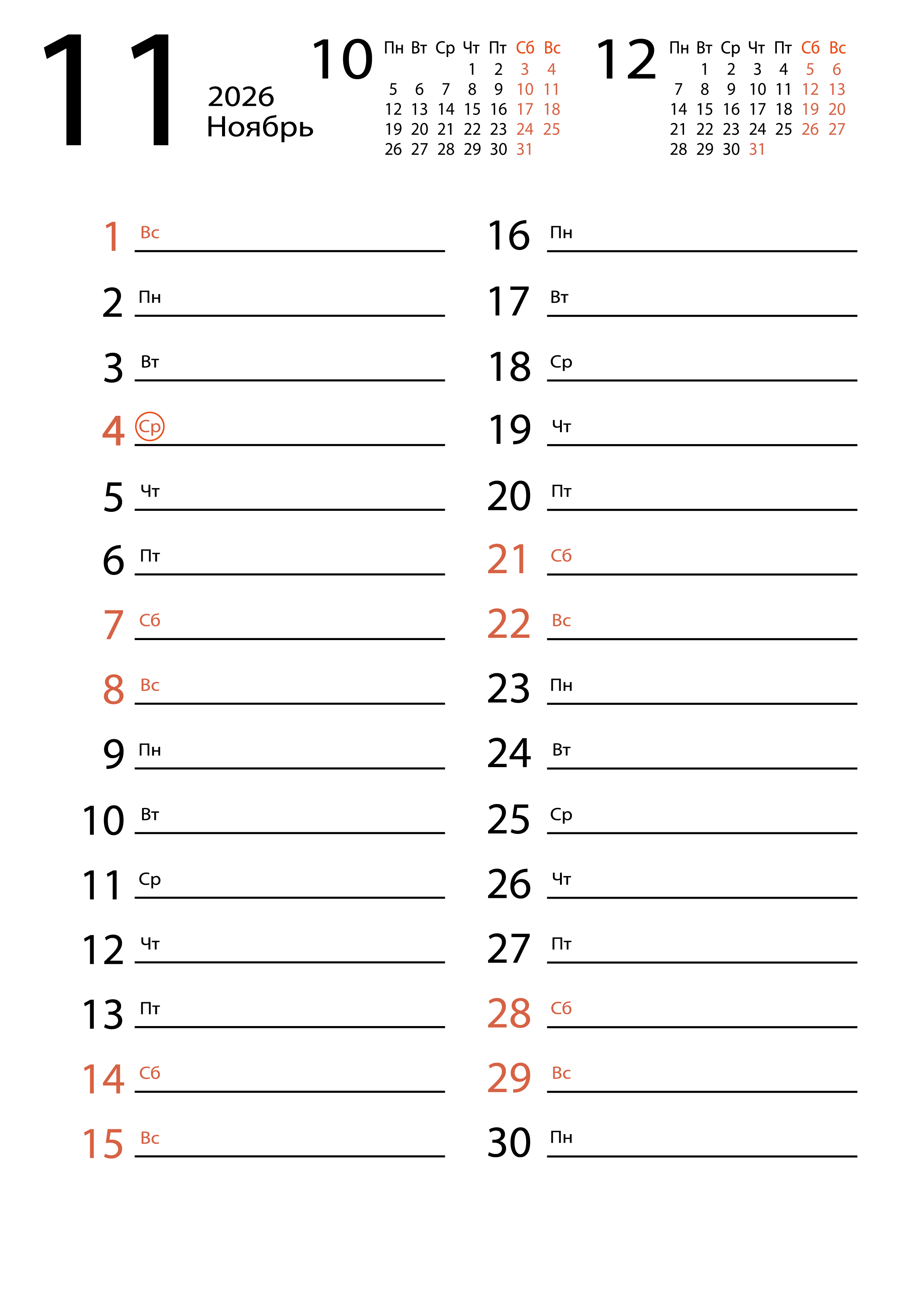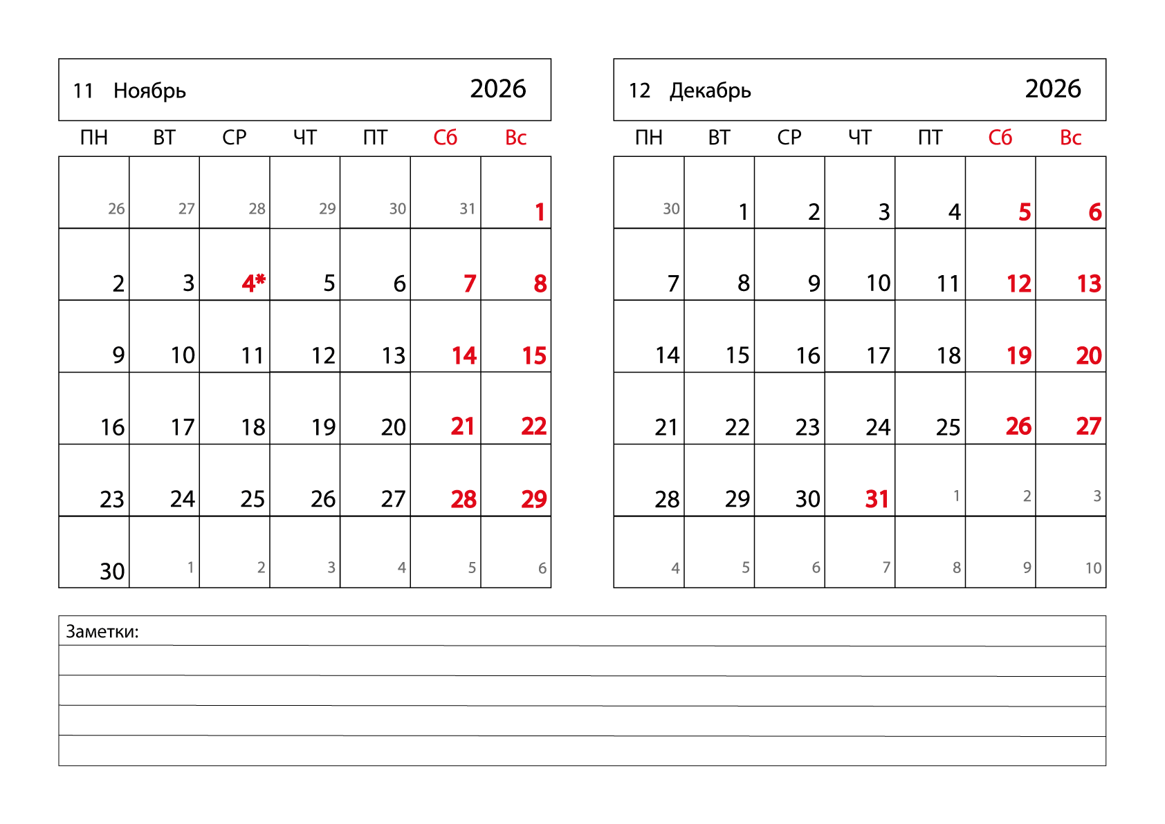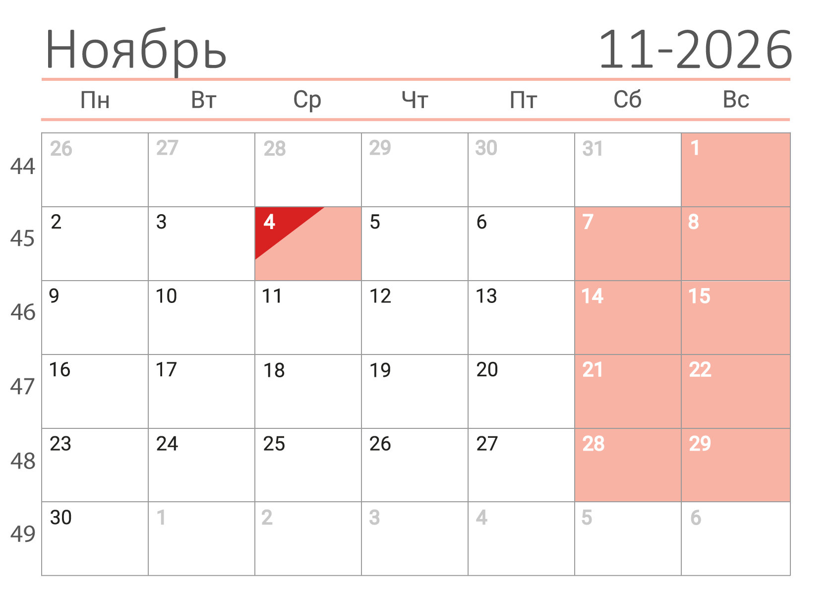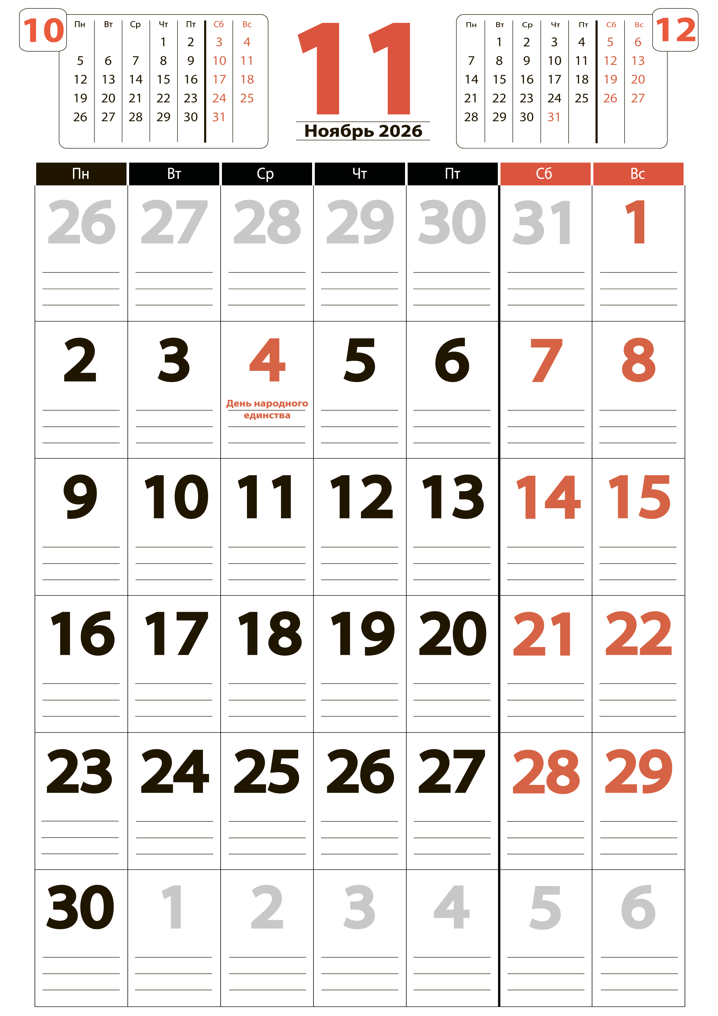 Для скачивания календаря на ноябрь подготовлено четыре вида: обычный, вертикальный, сеткой и большой. Все календари представлены в формате png, в высоком разрешении, совершенно бесплатно. Скачав, можете распечатать или поставить на заставку.