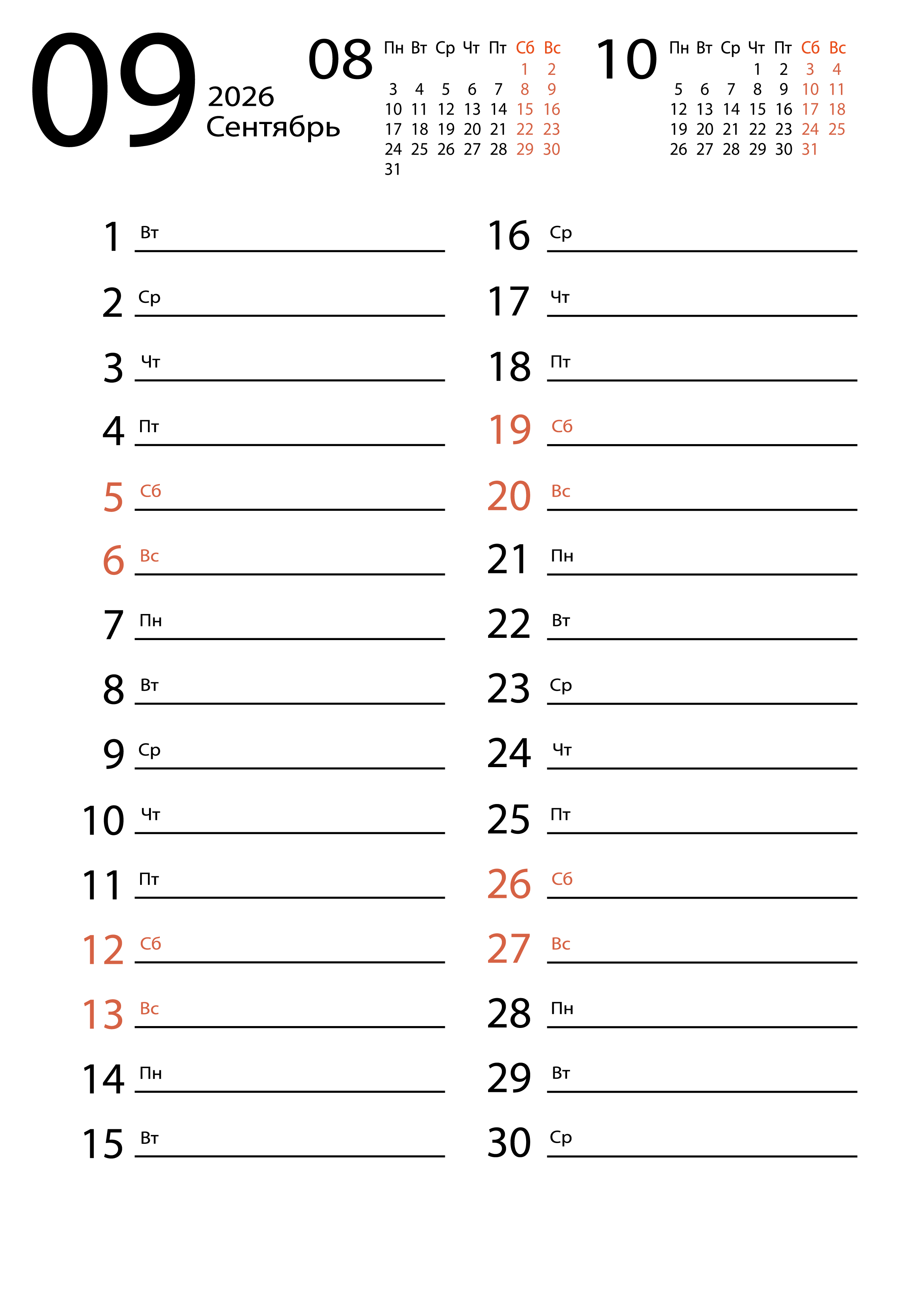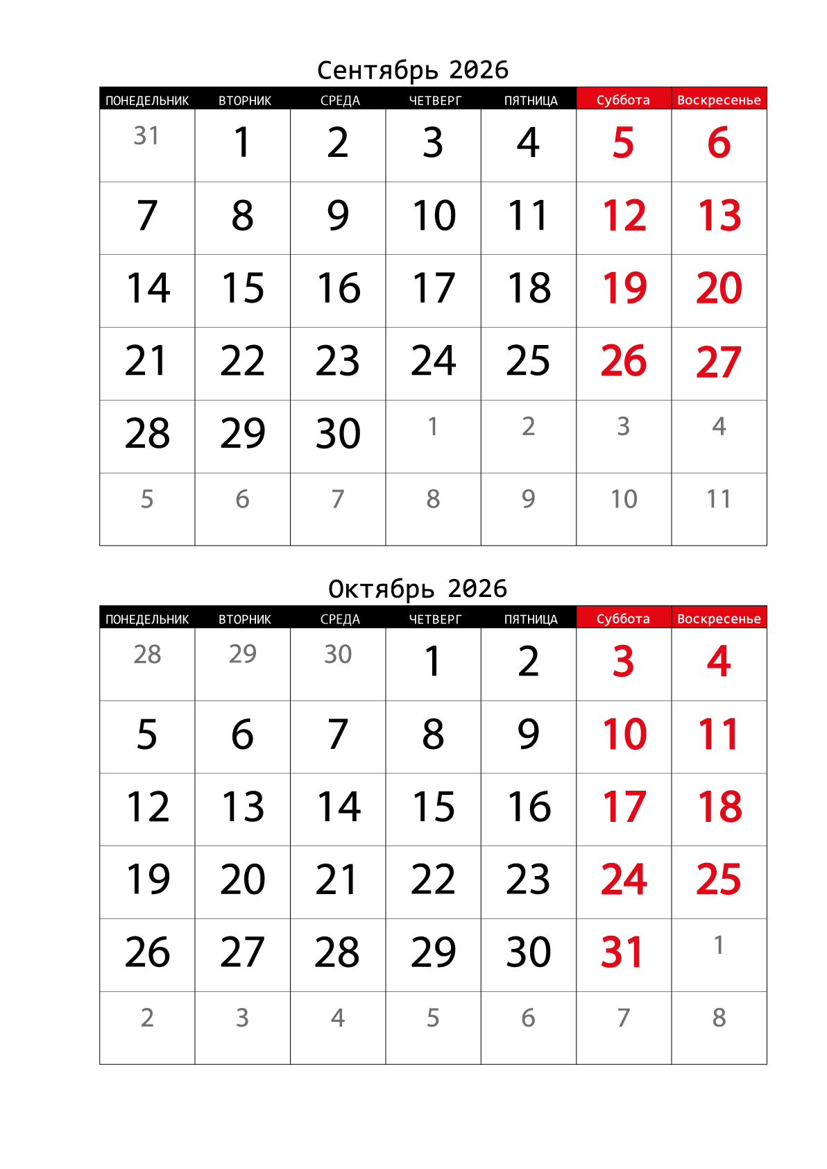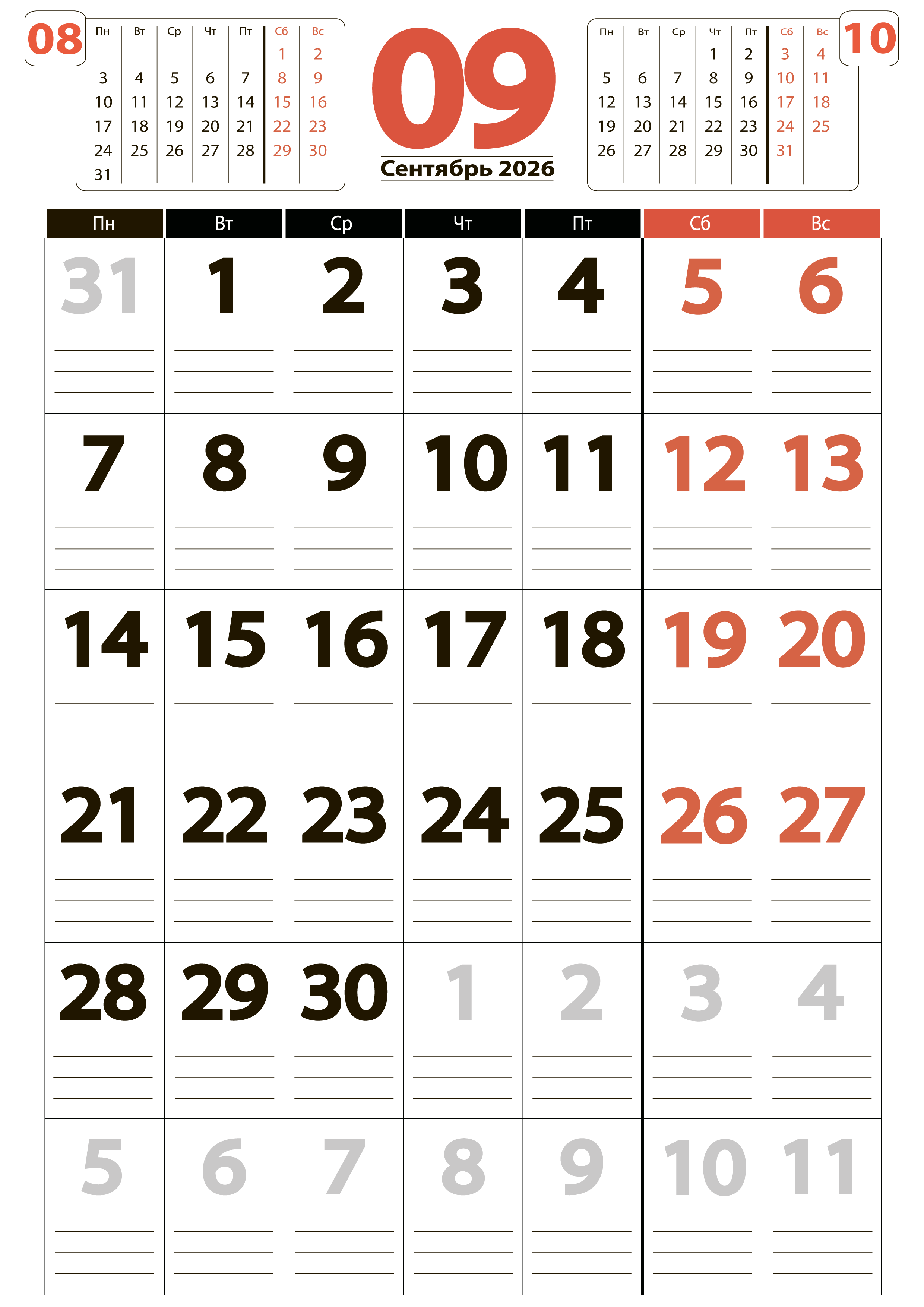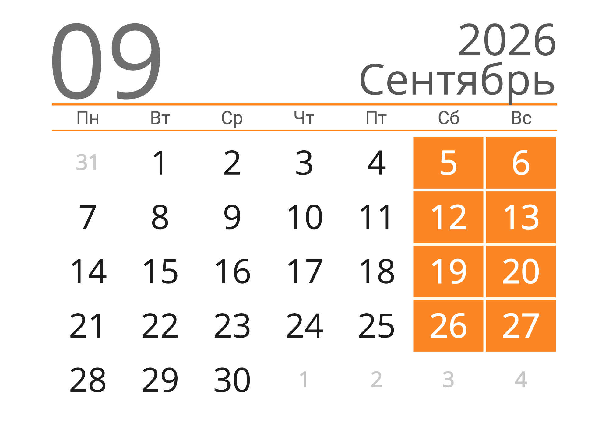 Для скачивания календаря на сентябрь подготовлено четыре вида: обычный, вертикальный, сеткой и большой. Все календари представлены в формате png, в высоком разрешении, совершенно бесплатно. Скачав, можете распечатать или поставить на заставку.